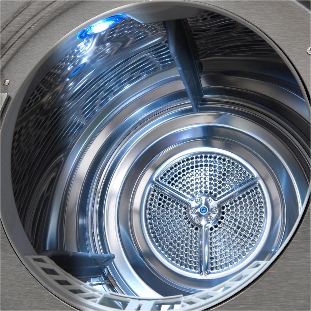Navzdory svému velice suverénnímu výkonu se vašemu oblečení dostane od LG RC91V9EV2N také jemné péče, díky které se vyhladí záhyby a snižuje se pomačkání, to vše zásluhou tepelného čerpadla. Automatická detekce vlhkosti prádla pomůže spotřebiči vybrat potřebnou teplotu sušení, dosáhne tak daleko vyšší efektivity za zlomek čas, než jste byli zvyklí. Sušička je navíc plně kompatibilní s vaším telefonem, díky aplikaci ThinQ. Můžete propojit pračku a sušičku, stahovat nové programy, nebo pracovat s přístrojem na dálku. Před montáží do bytu jistě oceníte možnost montáže dveří LG RC91V9EV2N na pravou i levou stranu, můžete jednoduše přizpůsobit spotřebič domácnosti, místo naopak. Dvířka z tvrzeného skla poskytují vysokou odolnost, přesto sušičce dodávají decentní a elegantní vzhled.
